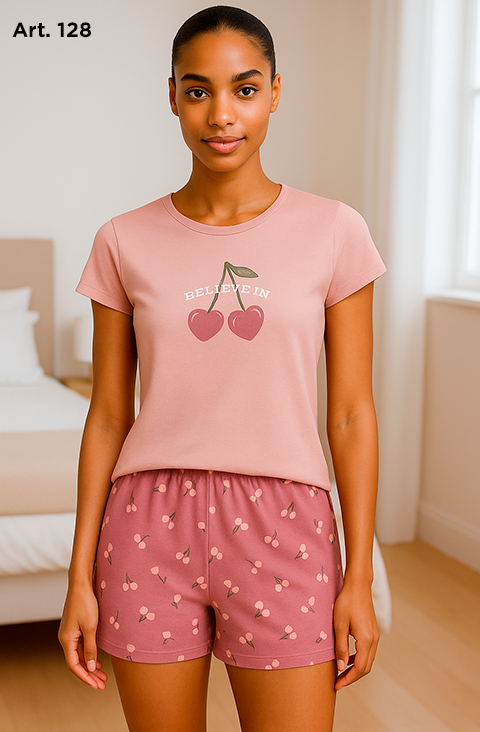 ART.: 128 Talles: 1/4 5/6 - Detalles: PIJAMA ALG. CEREZAS M/C