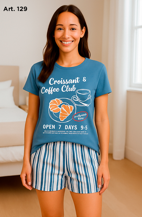 ART.: 129 Talles: 1/4 5/6 - Detalles: PIJAMA ALG. MEDIALUNA M/C