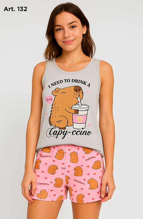ART.: 130 Talles: 1/4 5/6- Detalles: PIJAMA ALG. ABOTONADO CAPYBARA