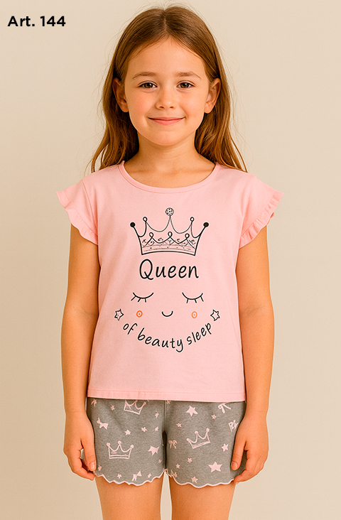 ART.: 144 Talles: 04/10 12/16 - Detalles: PIJAMA ALG. NENA QUEEN M/VOLADOS