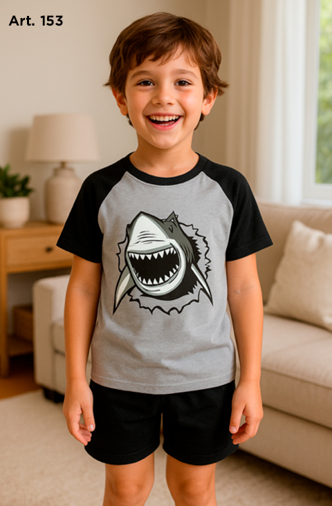 ART.: 153 Talles: 04/10 12/16 - Detalles: PIJAMA ALG. VARON TIBURON M/C